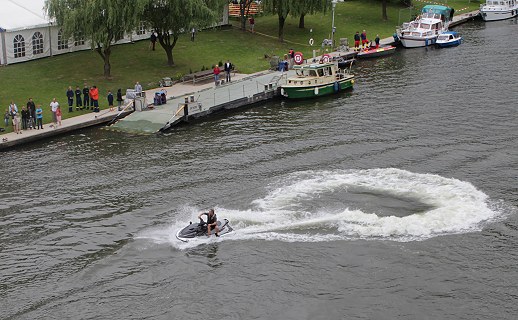 Spektakuläres Abendprogramm in Zwingenberg Jet-Ski-Fahrer aus der Brückenperspektive. (Foto:Wörner)Mehr Bilder (Klicken zum Vergrößern):