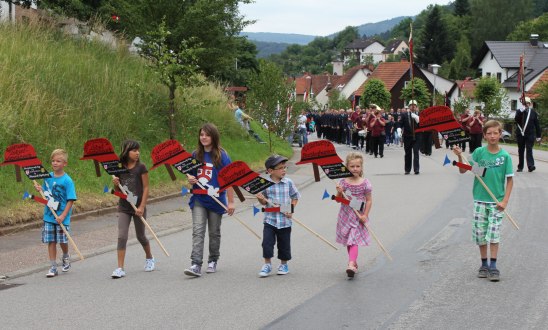 Festzug zum Jubiläumsfest der Freiwilligen Feuerwehr Schöllenbach