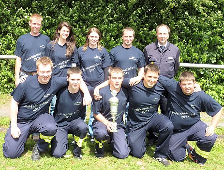 Rothenberg auf Rang zwei Das Team der Freiwilligen Feuerwehr Rothenberg mit Kreisbrandinspektor Horst Friedrich. (Foto: privat)(bro) (odk) In Glauburg-Glauberg im Wetteraukreis wurden die Hessischen Feuerwehrleistungsübungen des Regierungsbezirks Darmstadt für das Jahr 2011 ausgetragen. Die Mannschaften der Freiwilligen Feuerwehren Rothenberg und Brensbach/Nieder-Kainsbach vertraten dort den Odenwaldkreis, nachdem sie sich beim Kreisentscheid in Breuberg-Neustadt qualifiziert hatten.