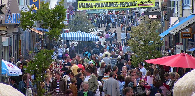 Gestern Abend tummelten sich viele Gäste und Kunden vor allem in der Bahnhofstraße, der Friedrichstraße und auf dem Neuen Markt, die allesamt für den Fahrzeugverkehr gesperrt waren. Geboten wurden neben zahlreichen Bewirtungsständen auch Autoausstellungen, eine Hüpfburg für Kinder, echte Alpakas zum Streicheln und Livemusik: Auf dem Neuen Markt spielte das Trio "Soulli", und am Bahnhofsplatz rockte die Band "Simplex" bis gegen 23.30 Uhr.