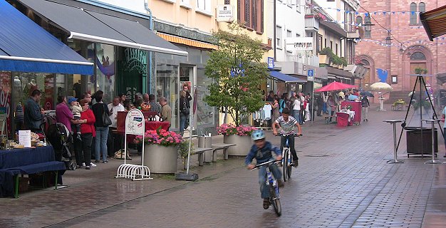 Zum Startbild (hr) Zahlreiche Eberbacher und Besucher ließen es sich gestern Abend in der Innenstadt gutgehen. Die Eberbacher Werbegemeinschaft (EWG) hatte zum Sommerfest mit langem Einkaufsabend eingeladen. Die Veranstaltung war gleichzeitig der Auftakt zu den "französischen Wochen".