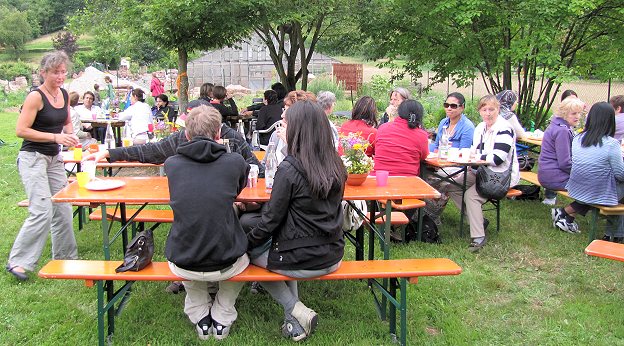 Frauen unterschiedlicher Organisationen feiern gemeinsam ein Fest (Foto: Doris Lenz)(dl) Am vergangenen Samstag wurde ein gemeinsames Fest im interkulturellen Garten in der Au gefeiert, dazu eingeladen hatten die Frauen des interkulturellen Gartens, die interkulturelle Frauenbegegnung sowie die Volkshochschule.