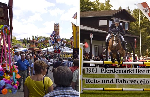 Menschen, Tiere, Traditionen (Fotos: Stadt Beerfelden)(hr) Seit 111 Jahren findet am 2. Wochenende im Juli – in diesem Jahr vom 8. bis 11. Juli - in Beerfelden der traditionelle „Beerfelder Pferde-, Fohlen- und Zuchtviehmarkt“ statt.