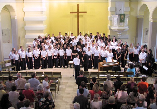 Blue Lake Youth Choir und Voices of Heaven konzertierten gemeinsam (Foto: Doris Lenz)(dl) Sehr international ging es in den letzten Tagen in Eberbach zu. Neben französischem Flair weilten auch Gäste aus Amerika in der Stauferstadt. Der Blue-Lake-International Youth Choir besuchte auf seiner Europatour auch Eberbach zum Jugendchor-Begegnungskonzert und begeisterte auch mit seinem zweiten Konzert das Eberbacher Publikum am Dienstagabend in der Michaelskirche.