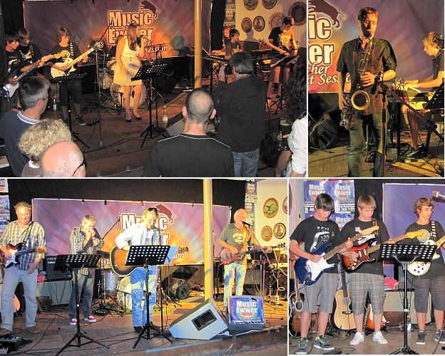 Musiker aus den Bands "Simplex", "Ex", "Rockefellers", "Unemployed", "61inch", "livingroom" aus Mosbach u.v.a., aber auch viele junge Nachwuchstalente der Musikschule, wie auch die im letzten Jahr mit dem Norbert-Köhler-Musikpreis ausgezeichnete Sarah Abassi, brachten wieder einmal richtig gute Stimmung in das Schützenhaus. In wechselnden Formationen unterhielten die jungen und jung gebliebenen Musiker/innen mit fetzigen und altbekannten Rock Songs im Woodstock Feeling, aber auch mit eigenen Kompositionen in vielfältigen Stilrichtungen ihr erfreutes und gut gelauntes Publikum. Nicht nur die Musiker/innen auf der Bühne hatten jede Menge Spaß bei diesem erneuten musikalischen Zusammentreffen, auch vor dem Vereinsheim tummelten sich in lauer Sommernacht viele musikbegeisterte Besucher in fröhlicher Runde um die Cocktailbar.