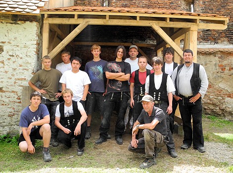 Marcel Egenberger (Zimmerei Holzwurm), Christian Hamberger (Holzbau Elsässer), Steven Harendarski (Peter Metz Holzbau), Felix Wiesendanger (Holzbau Strobel), Benjamin Peterka (Zimmerei Locher), Victor Weber (Hennrich Holzbau), Jonathan Schmaller (Holzbau Ernst), Jonathan Becker und Dominique Knobloch, (Holzbau Horn), Stefan Baumgartner (Maisch Holzbau), Daniel Lehr ( Zimmerei W. Marquetant), Kai Uwe Fischer, Fabian Fahr (TFS), Werner Pauli (TFS). (Foto: privat)(bro) (rod) Wie geplant fuhren Anfang Juli Zimmererlehrlinge der Theodor-Frey-Schule (TFS) unter der Leitung von Fabian Fahr und Werner Pauli für zwei Wochen nach Rumänien, um ihr Projekt zur Sanierung einer siebenbürgischen Kirchenburg aus dem 14. Jahrhundert durchzuführen.