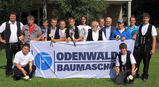 Werkzeugspende im Wert von 1.000 Euro Die Zimmererklasse mit Vertretern der Schule und der Firma Odenwälder Baumaschinen. (Foto: privat)(bro) (rod) Am Donnerstag, 21. Juli, konnte Fabian Fahr von der Zimmererabteilung der TFS in Anwesenheit von stellvertretendem Schulleiter Günter Link und Innungsobermeister Georg Grüber eine großzügige Spende entgegennehmen. Zum Abschluss und als nachträgliche Unterstützung der Projekts „Sanierung rumänischer Kirchenburgen“ (wir berichteten) überreichten Andreas Hook und Rolf Töppich im Auftrag der Firma Odenwälder Baumaschinen den fleißigen Zimmerern zehn Sätze hochwertiger Stemmeisen mit dazu gehörigen Klopfhölzern im Wert von 1.000 Euro.