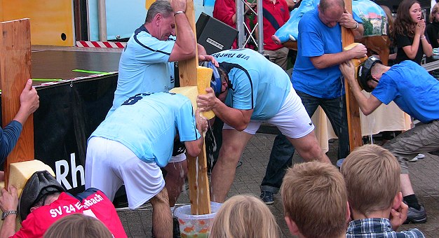 Ab 26. August darf abgestimmt werden Fußballer des VfB Eberbach, des SV Eberbach und der SG Rockenau beim Wassertransport per Schwamm auf dem Kopf. (Foto: Claudia Richter)Mehr Bilder (Klicken zum Vergrößern):