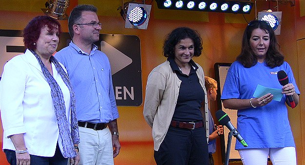 Ab 26. August darf abgestimmt werden V.l. Regine Sattler-Streitberg, Bernhard Martin und Stefanie Srivastava mit Moderatorin Frauke Hess beim Quiz über die Metropolregion. (Foto: Hubert Richter)Mehr Bilder (Klicken zum Vergrößern):