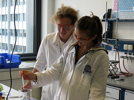 Besuch in Ludwigshafen (Foto: privat)(bro) (pm) Die Klasse 10c des Hohenstaufen-Gymnasiums Eberbach besuchte Mitte Juli als Abschluss des dreijährigen Chemieunterrichts das Schülerlabor der BASF in Ludwigshafen. Die Schüler arbeiteten dabei in Gruppen. Es wurden Haargel, Sonnencreme und Orangenöl hergestellt. Außerdem wurden verschieden Experimente (z.B. zur Esterbildung) durchgeführt. Unabhängig davon, ob Chemie vierstündig gewagt oder für immer abgewählt wird, hatten alle Schüler einen großen Spaß am Experimentieren und jeder durfte nachher die selbst gemachten Produkte mit nach Hause nehmen.
