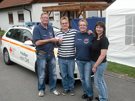 Überraschungsspende für die Helfer vor Ort (Foto: privat)(bro) (rl) Bei etwas kühlem Wetter fand am vergangenen Samstag das dritte Straßenfest zugunsten der "Helfer vor Ort" aus Neckargerach in Zwingenberg statt. Zahlreiche Gäste aus nah und fern fanden an diesem Tag den Weg in das Augstbaumfeld.