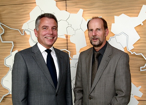 Joachim Bauer als Erster Landesbeamter im Amt Landrat Stefan Dallinger und sein neuer Stellvertreter, der Erste Landesbeamte beim Rhein-Neckar-Kreis Joachim Bauer (re.), bilden seit 1. August das Führungsduo der Kreisverwaltung.