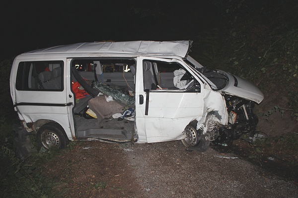 Die Jugendgruppe aus Bayern, Teilnehmer eines Zeltlagers auf der Burg Stolzeneck, befand sich auf dem Weg in Richtung Neckar zu einem Badeausflug. Etwa 250 Meter vor Erreichen des Neckarweges streifte der VW T4 die bergseitige Hangkante, überschlug sich iund kam danach wieder auf dem Weg zum Stehen.
