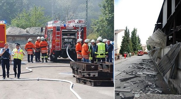 Durch die Druckwelle wurde eine komplette Außenwand der Gießerei umgedrückt und durch die Hitzewelle ein Baum auf einem benachbarten Grundstück in Brand gesetzt. Vorsorglich mussten die Bewohner eines angrenzenden Mehrfamilienhauses kurzzeitig evakuiert werden.