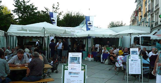 Deftiges aus der Kurpfalz für französische Festbesucher Gut besucht war der Stand der Eberbacher am 1. September in Thonon. (Foto: privat)(hr) (dg) Auch im 50. Jahr der Städtepartnerschaft mit Thonon-les-Bains beteiligte sich am 1. September eine Delegation aus Eberbach mit einem Bewirtungsstand am Stadtfest "Foire de Crête".