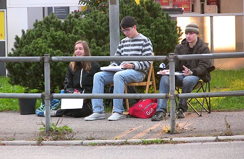Datenerhebung für Planungen im Sanierungsgebiet (Foto: Claudia Richter)(cr) 17 Schülerinnen und Schüler der Jahrgangsstufe 10 des Hohenstaufen-Gymnasiums zählten heute an mehreren Stellen den Straßenverkehr in Eberbach.