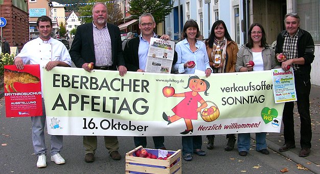 Verkaufsoffene Geschäfte und großes Unterhaltungsprogramm Das Organisationsteam erwartet am 15. und 16. Oktober zahlreiche Besucher in der Innenstadt. (Foto: Claudia Richter)(cr) Zum 25. Eberbacher Apfeltag lädt die Eberbacher Werbegemeinschaft (EWG) am 16. Oktober in die Innenstadt ein. Was einst mit einem Ideenaustausch innerhalb eines Arbeitskreises begann, hat sich bis heute zu einem Fest mit überregionaler Bedeutung entwickelt.