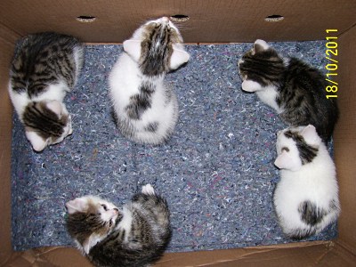 Polizei sucht Eigentümer ausgesetzter Katzenbabys (Foto: Polizei)(lct) (pol) Fünf junge Kätzchen aufgefunden hat am frühen Dienstagmorgen, 18. Oktober, kurz nach 6:30 Uhr ein Zeuge, der beim Gassi-Gehen mit seinem Hund Am Linkbrunnen fünf junge Kätzchen (siehe Bild) auf einer Parkbank sitzen sah.