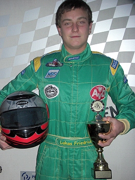 Lukas Friedrich ist Deutscher Superkartslalom-Meister (Foto: privat)(bro) (mf) Am letzten Wochenende fand die Deutsche Superkartslalom Meisterschaft in der Nähe von Jena statt. Knapp 50 Fahrer hatten sich dafür qualifiziert und waren angereist. Auch Lukas Friedrich vom MSC Eberbach war mit von der Partie.