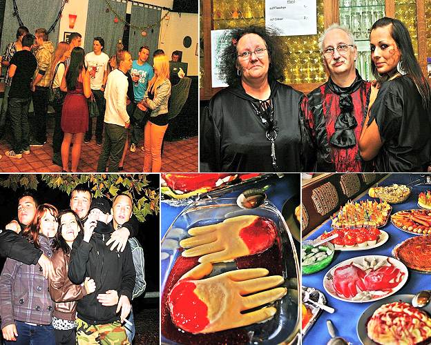 Gespenstische Partystimmung beim VfB (Fotos: privat)(bro) (mf) Gestern Abend veranstaltete der VfB Eberbach in seinem Vereinsheim seine erste Halloween-Party für die Jugend. Die Selbstbedienung am Buffet mit "abgehackten Händen", "Mäusen" und anderen gruseligen Spezialitäten war im Eintrittspreis inbegriffen. Gegen 22.30 Uhr füllte sich das Vereinsheim, und es herrschte eine gespenstische Partystimmung unter den Jugendlichen.