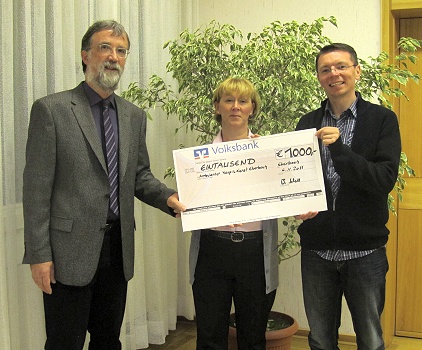 1.000 Euro für den Ambulanten Hospizdienst in Eberbach-Schönbrunn (Foto: privat)(bro) (bs) Hocherfreut konnten Christine Heck und Markus Wäsch, beides sind Mitarbeiter des Ambulanten Hospizdienstes, einen Scheck in Höhe von 1.000 Euro für die Arbeit des Hospizdienstes von Bernhard Schell, Pfarrgemeinderatsvorsitzender von St. Josef, Eberbach, in Empfang nehmen. Dieser Betrag ist der Erlös des traditionellen Gemeindetreffs, der jeden ersten Sonntag im Monat in der Unterkirche von St. Josef stattfindet und sozialen Projekten zugutekommt.
