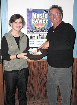Sichtlich stolz übergab Sarah Abassi, die letztjährige Preisträgerin des Norbert Köhler-Musikpreises, den Hut mitsamt Inhalt an den Beirat der Stiftung, Willi Haas, der sich bei allen Beteiligten für die Spende bedankte: „Besser kann es nicht laufen. Gestandene Musiker fördern ihren Nachwuchs. Ganz im Sinne der Stiftung."