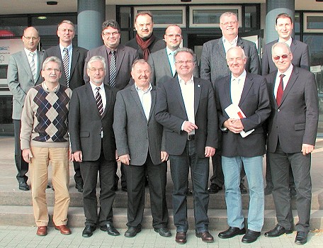 Informationsaustausch und Pflege nachbarschaftlicher Beziehungen Obere Reihe v. li.: Gottfried Görig (Beerfelden), Dr. Norbert Rippberger, Rainer Sens (Hirschhorn), Eberhard Petri (Neckarsteinach), Jan Frey (Schönbrunn), Thomas Ihrig (Hesseneck), Norman Link (Neckargerach). Untere Reihe v. li: