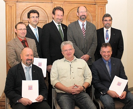 Sechs Odenwälder Bürger mit dem Ehrenbrief des Landes ausgezeichnet In der Kreisverwaltung in Erbach überreichten Landrat Dietrich Kübler und Kreistagsvorsitzender Rüdiger Holschuh Ehrenbriefe des Landes Hessen an Gerhard Beisel, Andreas Krauch und Jürgen Schmidt (vordere Reihe von li.) sowie Jürgen Volk, Wilfried Wilhelm und Bernhard Toebe (stehend, v. re.). (Foto: privat)(bro) (owk) Fünf Bürger aus Beerfelden und einer aus der Kreisstadt sind im Landratsamt in Erbach am 22. November mit dem Ehrenbrief des Landes Hessen ausgezeichnet worden.