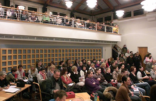 Spatzennest will 40 neue Betreuungsplätze schaffen Für ein volles Haus im Ratssaal sorgte heute das Kindergartenthema. (Foto: Hubert Richter)(hr) Große Zuhörerscharen sind die Eberbacher Stadträtinnen und Stadträte bei ihren öffentlichen Sitzungen eigentlich nicht gewohnt. Heute jedoch herrschte im Saal des Rathauses ein riesiger Andrang. Grund war ein Thema, das vor allem viele junge Eltern in der Stadt bewegt: ein Antrag des Vereins Spatzennest e.V. auf Aufnahme von 40 Betreuungsplätzen in den Kindergartenbedarfsplan der Stadt.