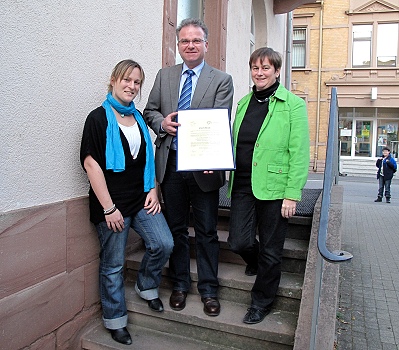 VHS möchte mehr Teilnehmende gewinnen Stolz präsentieren Barbara Coors (re.) und Melanie Wehrmann (stellvertretend für das VHS-Team) mit Bürgermeister Bernhard Martin die Urkunde. (Foto: privat)(bro) (vhs) Die Volkshochschule Eberbach-Neckargemünd erhält zum dritten Mal nach 2004 und 2007 das Qualitätszertifikat des Volkshochschulverbandes Baden-Württemberg.