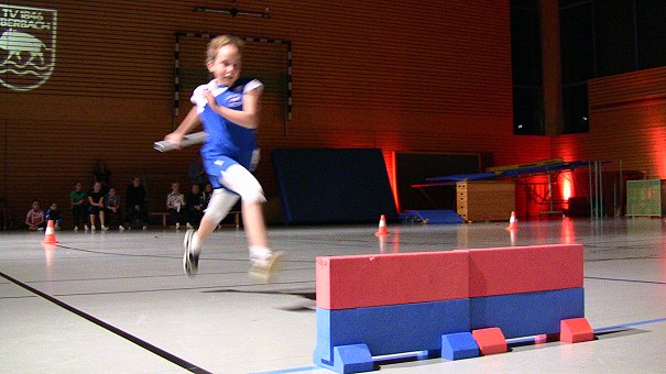 Nach der Begrüßung durch Vorstandsmitglied Janek Lange übernahm seine Vorstandskollegin Gisela Fleck zusammen mit Toni Dausch die Moderation des Programms. Den Anfang machten die Kinder der allgemeinen Turngruppen, gefolgt von der ersten Jazztanzeinlage der Gruppe "New Fellaz". Dann waren die Kleinsten vom Zwergen-, Kleinkinder- und Eltern-Kind-Turnen an der Reihe. Die Leichtathleten zeigten eine rasante Staffel und ein Ballspiel. Ganz bunt kamen die Kids Basketballabteilung daher und gingen auf Korbjagd. Die Judokas präsentierten Fallübungen und Wurftechniken, bevor sich die jungen Gerätturner der Fördergruppe auf dem großen Trampolin sogar an den doppelten Salto wagten.
