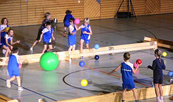 Rundes turnsportliches Spektakel war wieder ein Besuchermagnet Die Leichtathletikabteilung beim Ballspiel. (Foto: Claudia Richter)Mehr Bilder (Klicken zum Vergrößern):
