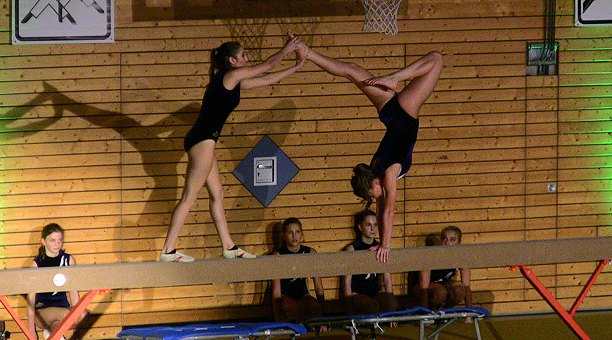 Nach der Begrüßung durch Vorstandsmitglied Janek Lange übernahm seine Vorstandskollegin Gisela Fleck zusammen mit Toni Dausch die Moderation des Programms. Den Anfang machten die Kinder der allgemeinen Turngruppen, gefolgt von der ersten Jazztanzeinlage der Gruppe "New Fellaz". Dann waren die Kleinsten vom Zwergen-, Kleinkinder- und Eltern-Kind-Turnen an der Reihe. Die Leichtathleten zeigten eine rasante Staffel und ein Ballspiel. Ganz bunt kamen die Kids Basketballabteilung daher und gingen auf Korbjagd. Die Judokas präsentierten Fallübungen und Wurftechniken, bevor sich die jungen Gerätturner der Fördergruppe auf dem großen Trampolin sogar an den doppelten Salto wagten.