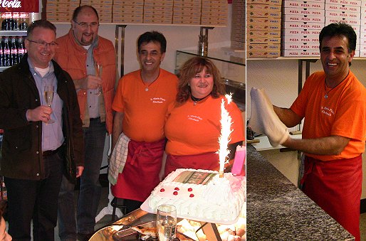 Pizza, Pasta und Dolci in der Bahnhofstraße Bürgermeister Bernhard Martin und Bernhard Walter gratulierten Mario Faro und Petrera Carmela seitens der Stadt zur Neueröffnung (v.l.). Rechts der Pizzabäcker in seinem Element. (Fotos: Hubert Richter)(hr) In der Bahnhofstraße 8 hat gestern "S. Mario Pizza" eröffnet. In den zu einem Bistro umgestalteten Räumen einer ehemaligen Bäckerei gibt es neben Pizzen in vielen Variationen auch typisch italienische Nudelgerichte, Salate und Süßspeisen.