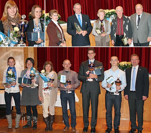 "Sportlerin des Jahres" wurde diesmal Diana Israel, die bei den Nationalen Winterspielen der Special Olympics 2011 für Teilnehmer mit Behinderungen unter anderem eine Goldmedaille im Slalom errungen hatte. Auf Platz zwei wurde Angelika Merkel (Schlittenhunde) gewählt, und auf den dritten Platz kam Lisa Baumbusch (RG Eberbach). "Sportler des Jahres" ist Simon Schiml für mehrere Erstplatzierungen im Rudern, gefolgt von Wladislaw Gumarow (Karate) und Christoph Diehl (Schlittenhunde). "Mannschaft des Jahres" wurden Lisa Biesenberger, Nina Johe und Karina Schneider (SSV Eberbach) für ihren dritten Platz bei den Deutschen Meisterschaften. Nicht dabei sein konnte diesmal der Eberbacher Top-Triathlet Timo Bracht, weil er sich für einen Wettkampf zurzeit in Australien aufhält. Der Saal wünschte ihm Glück mit einem Daumen-Hoch-Foto, das Bernhard Martin eigenhändig aufnahm und auf Brachts Facebook-Seite übertrug.