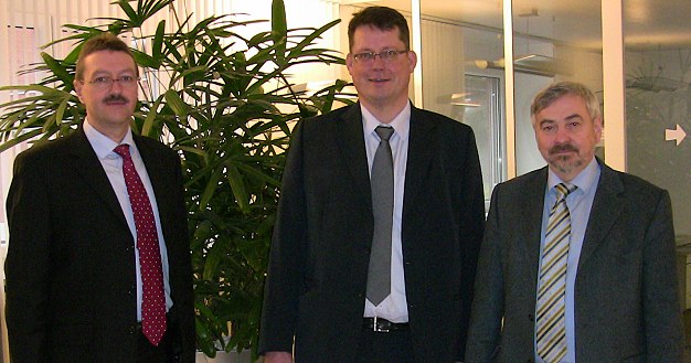 Vorbildlich bei der Beschäftigung von Schwerbehinderten V.l. Personalchef Gerd Winzenried, Scherer- Geschäftsführer Stefan Jütten und Wolfgang Heckmann von der BA Heidelberg. (Foto: Claudia Richter)(cr) Weil sie überdurchschnittlich viele Menschen mit Behinderungen beschäftigt, wurde heute die Eberbacher Firma R.P. Scherer von der Bundesagentur für Arbeit (BA) ausgezeichnet.