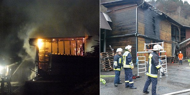 Gegen 5 Uhr brach der Brand in einer Lagerhalle aus. Ursache des Feuers war vermutlich eine Selbstentzündung von Trockentrester, der hinter dem Gebäude gelagert war. Obwohl die Feuerwehr den Brand schnell im Griff hatte, wurde die Holzkonstruktion des Gebäudes derart beschädigt, dass die Halle abgerissen werden muss. Auch die insgesamt rund 100 Tonnen Trockentrester, die zur Futtermittelherstellung verkauft werden sollten, wurden stark beschädigt. Insgesamt entstand ein Sachschaden von rund 70.000 Euro.