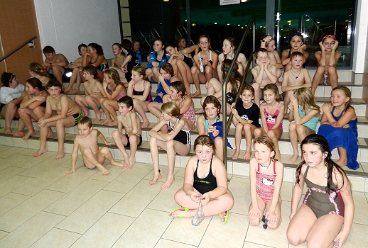 Jahr 2011 mit einem gemeinsamen Schwimmwettkampf beendet Ein Großteil der jungen Schwimmerinnen und Schwimmer beim Warten auf die Siegerehrung. (Foto: privat)(bro) (mz) Montags teilen sich die Schwimmer des SV Neptun Waldbrunn und des DLRG Waldbrunn die Bahnen des Waldbrunner Hallenbades zum Trainieren. Dabei wurde im Laufe des zu Ende gehenden Jahres die Idee geboren, einen gemeinsamen Schwimmwettkampf als Jahresabschluss zu organisieren. Dies wurde am vergangenen Montag, 19. Dezember, in die Tat umgesetzt.