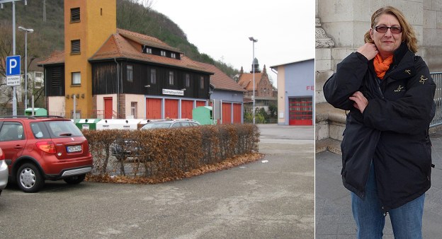 Das gesuchte Fahrzeug der Getöteten konnte heute Mittag auf dem Parkplatz Bleichwiese in Mosbach gefunden werden, wo es ordnungsgemäß geparkt war (unser Bild links). Bislang noch unklar ist, ob der Pkw von Sabine Jauch selbst oder dem Täter dort abgestellt worden ist.