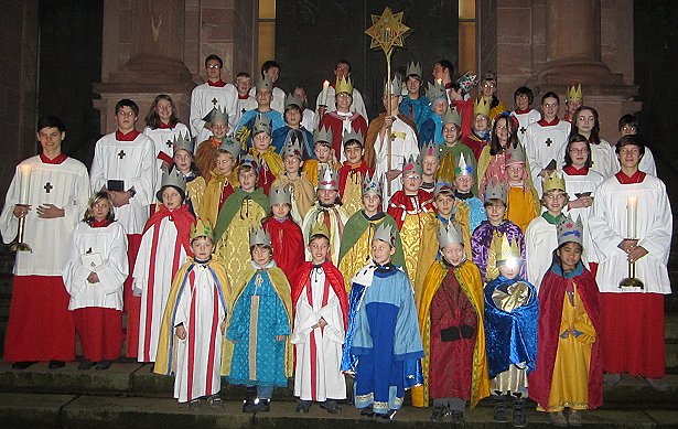 Am Nachmittag des Dreikönigstages machten sich dann fast 50 Sternsinger in ihren "königlichen Gewändern", verteilt auf zwölf Gruppen mit ihren erwachsenen Begleitern vom "Basislager", dem Pfarrheim in der Feuergrabengasse, aus auf den Weg. Sie besuchten Familien, die einen Besuch gewünscht hatten, die Altenheime und das Krankenhaus in Eberbach, um nach christlichem Glauben Gottes Segen zu bringen, die frohe Botschaft von der Geburt Jesu zu verkünden und um Spenden zu sammeln. Wie schon Tradition, besuchten die Sternsinger dabei auch den evangelischen Gottesdienst in der Michaelskirche.