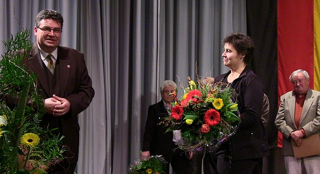In harten Zeiten das Miteinander stärken - Ehrungen für Bürgerengagement Christine van den Berg und ihr Mann Rolf, der heute nicht anwesend sein konnte, wurden für ihre Eisbahn-Initiative geehrt. (Foto: Hubert Richter)Mehr Bilder (Klicken zum Vergrößern):
