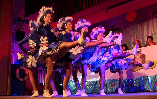 Den zweiten Teil der Sitzung leitete ein nostalgisches Männerballett ein, und Sandra Dietz erzählte in der Bütt einfach über sich selbst. Mit dem überzeugenden Marschtanz der "Eulensterne" und den zu Akkordeonklängen vorgetragenen Baumarkt-Geschichten von Rettungstaucher Johann "Wastl" Bachl folgten zwei viel bejubelte Höhepunkte. "Wastl" durfte erst nach zwei Zugaben von der Bühne gehen. Die Schautanzgruppe "Flames" führte das Publikum in die Steinzeit zurück, und Michael Beisel entzückte in der Bütt mit seinen Erlebnissen als graziles Tanzmariechen. Schließlich legte das närrische Schiff "Neckar-Eule", das in diesem Jahr das Rockenauer Bühnenbild bestimmt, mit einer bunten Schar Akteure auf der Bühne in Richtung Finale ab.