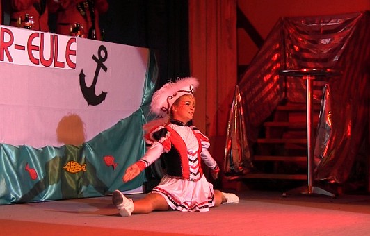 Einen zackigen Marschtanz präsentierte die Garde der "Eulenfunken", und Steffi Müller zeigte als kesse Göre auf Männersuche, was an ihr dran ist. In die Pause ging es dann mit dem artistisch geübten Tanzmariechen Ann-Kathrin Wiegel.