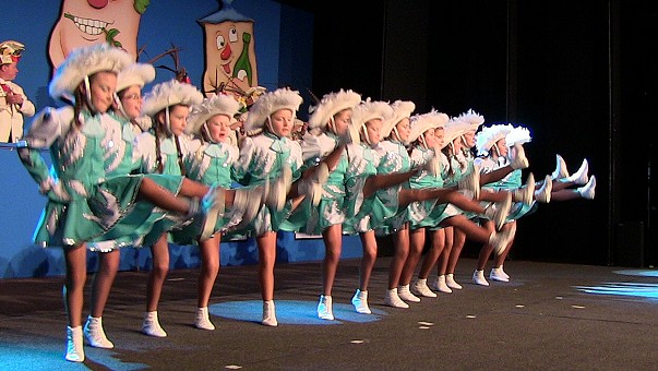Der Fanfarenzug stimmte schmissig ein, bevor die lange Reihe der Aktiven mit lauten "Hoja"-Rufen einmarschierte. Einen ersten Gardetanz zeigten die kleinen "Kuckucksküken", und Robert Moray als "Großer Mor mit kleinem Ay" stieg in die Bütt. Er ist in diesem Jahr zum letzten Mal dabei, und ihm ist der diesjährige Kampagneorden der Kuckucke gewidmet. Seit 2006 hält Moray in den KGK-Prunksitzungen den "Prolog", und auch in seiner Abschiedsrede drehten sich die Verse wieder um die politischen und gesellschaftlichen Vorkommnisse in aller Welt. Als tanzende Hexen verzauberten die "Kuckuckskrümel" den Saal. Die "Gässelspatzen" trällerten wieder hochnotpeinliche Pannen der Eberbacher, und Tanzmariechen Jana Geilsdörfer wirbelte taktsicher und gelenkig über die Bühne. Teenager Emma Auer erzählte aus dem Familienleben, und die Junioren der Ranzengarde zeigten einen "Star Wars"-Tanz. Die Waschfrauen Regina Becker und Martina Wäsch erzählten sich am Waschzuber den neuesten Tratsch der Stadt. Ihren Musiksketch siedelten Barbara, Rainer und Jonathan Menges in einem fiktiven Großflughafen in Eberbach an. Kuckuckskids, Kuckucksgarde und die Prinzengarde präsentierten zackige Marschtänze als Ergebnis monatelangen Trainings, und richtig bunt wurde es auf der Bühne bei den Schautänzen der "Nesthocker" - Thema "Ver(w)irrte Prinzen" - und der "Elwetritsche" (Vive la France). Kalauer und Gags am laufenden Band lieferten die "Krawallschachteln" (Silke Auer und Petra Hildenbrand) ebenso wie später das Duo Heiner und Gretel (Jens Müller und Silke Auer). KGK-Präsident Udo Geilsdörfer schwebte als Marienkäfer in die Bütt, und Benni Müller berichtete von seinen Erfahrungen als Jubiläumsprinz der KG Kuckuck im vergangenen Jahr, als es für ihn nur Mineralwasser zu trinken gab. Ein musikalisches Medley über die Eurokrise boten die stimmgewaltigen "Stadtschwalben". Nach Wild-West-Klamauk von den "Hallodries" ging es mit Sänger Jürgen Huber und allen Aktiven des Abends zum großen Finale mit dem Faschingshit "Viva Colonia".