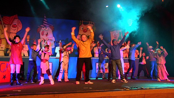Der Fanfarenzug stimmte schmissig ein, bevor die lange Reihe der Aktiven mit lauten "Hoja"-Rufen einmarschierte. Einen ersten Gardetanz zeigten die kleinen "Kuckucksküken", und Robert Moray als "Großer Mor mit kleinem Ay" stieg in die Bütt. Er ist in diesem Jahr zum letzten Mal dabei, und ihm ist der diesjährige Kampagneorden der Kuckucke gewidmet. Seit 2006 hält Moray in den KGK-Prunksitzungen den "Prolog", und auch in seiner Abschiedsrede drehten sich die Verse wieder um die politischen und gesellschaftlichen Vorkommnisse in aller Welt. Als tanzende Hexen verzauberten die "Kuckuckskrümel" den Saal. Die "Gässelspatzen" trällerten wieder hochnotpeinliche Pannen der Eberbacher, und Tanzmariechen Jana Geilsdörfer wirbelte taktsicher und gelenkig über die Bühne. Teenager Emma Auer erzählte aus dem Familienleben, und die Junioren der Ranzengarde zeigten einen "Star Wars"-Tanz. Die Waschfrauen Regina Becker und Martina Wäsch erzählten sich am Waschzuber den neuesten Tratsch der Stadt. Ihren Musiksketch siedelten Barbara, Rainer und Jonathan Menges in einem fiktiven Großflughafen in Eberbach an. Kuckuckskids, Kuckucksgarde und die Prinzengarde präsentierten zackige Marschtänze als Ergebnis monatelangen Trainings, und richtig bunt wurde es auf der Bühne bei den Schautänzen der "Nesthocker" - Thema "Ver(w)irrte Prinzen" - und der "Elwetritsche" (Vive la France). Kalauer und Gags am laufenden Band lieferten die "Krawallschachteln" (Silke Auer und Petra Hildenbrand) ebenso wie später das Duo Heiner und Gretel (Jens Müller und Silke Auer). KGK-Präsident Udo Geilsdörfer schwebte als Marienkäfer in die Bütt, und Benni Müller berichtete von seinen Erfahrungen als Jubiläumsprinz der KG Kuckuck im vergangenen Jahr, als es für ihn nur Mineralwasser zu trinken gab. Ein musikalisches Medley über die Eurokrise boten die stimmgewaltigen "Stadtschwalben". Nach Wild-West-Klamauk von den "Hallodries" ging es mit Sänger Jürgen Huber und allen Aktiven des Abends zum großen Finale mit dem Faschingshit "Viva Colonia".