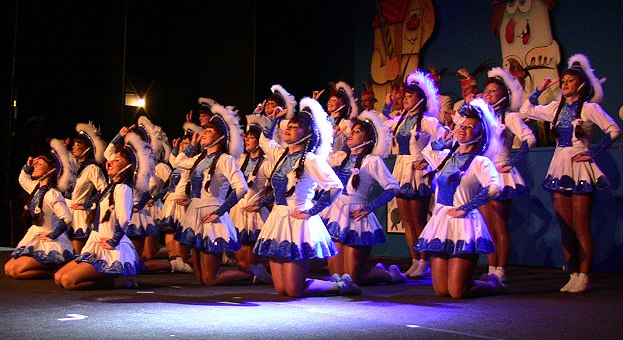 Der Fanfarenzug stimmte schmissig ein, bevor die lange Reihe der Aktiven mit lauten "Hoja"-Rufen einmarschierte. Einen ersten Gardetanz zeigten die kleinen "Kuckucksküken", und Robert Moray als "Großer Mor mit kleinem Ay" stieg in die Bütt. Er ist in diesem Jahr zum letzten Mal dabei, und ihm ist der diesjährige Kampagneorden der Kuckucke gewidmet. Seit 2006 hält Moray in den KGK-Prunksitzungen den "Prolog", und auch in seiner Abschiedsrede drehten sich die Verse wieder um die politischen und gesellschaftlichen Vorkommnisse in aller Welt. Als tanzende Hexen verzauberten die "Kuckuckskrümel" den Saal. Die "Gässelspatzen" trällerten wieder hochnotpeinliche Pannen der Eberbacher, und Tanzmariechen Jana Geilsdörfer wirbelte taktsicher und gelenkig über die Bühne. Teenager Emma Auer erzählte aus dem Familienleben, und die Junioren der Ranzengarde zeigten einen "Star Wars"-Tanz. Die Waschfrauen Regina Becker und Martina Wäsch erzählten sich am Waschzuber den neuesten Tratsch der Stadt. Ihren Musiksketch siedelten Barbara, Rainer und Jonathan Menges in einem fiktiven Großflughafen in Eberbach an. Kuckuckskids, Kuckucksgarde und die Prinzengarde präsentierten zackige Marschtänze als Ergebnis monatelangen Trainings, und richtig bunt wurde es auf der Bühne bei den Schautänzen der "Nesthocker" - Thema "Ver(w)irrte Prinzen" - und der "Elwetritsche" (Vive la France). Kalauer und Gags am laufenden Band lieferten die "Krawallschachteln" (Silke Auer und Petra Hildenbrand) ebenso wie später das Duo Heiner und Gretel (Jens Müller und Silke Auer). KGK-Präsident Udo Geilsdörfer schwebte als Marienkäfer in die Bütt, und Benni Müller berichtete von seinen Erfahrungen als Jubiläumsprinz der KG Kuckuck im vergangenen Jahr, als es für ihn nur Mineralwasser zu trinken gab. Ein musikalisches Medley über die Eurokrise boten die stimmgewaltigen "Stadtschwalben". Nach Wild-West-Klamauk von den "Hallodries" ging es mit Sänger Jürgen Huber und allen Aktiven des Abends zum großen Finale mit dem Faschingshit "Viva Colonia".
