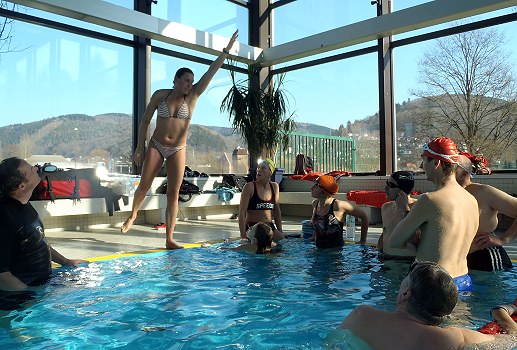 Schwimmseminar mit Videoanalyse (Foto: privat)(bro) (ank) Ein intensives Schwimmseminar fand am vergangenen Wochenende mit Dani Weber (sports & more) und Andreas Kohler (TV 1846 Eberbach Abt. Schwimmen) im Eberbacher Hallenbad statt. Co-Trainerin Yvonne Wagner stand dem Team hilfreich zur Seite.