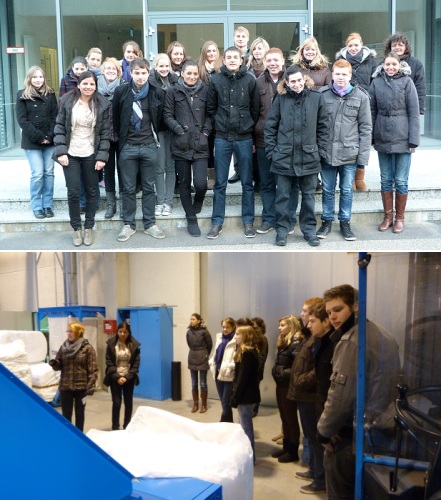 Nach einem ausführlichen Vortrag, der sowohl auf die Produkte und Ziele als auch auf die Geschichte der Oskar Dilo Maschinenfabrik KG einging, führten die Auszubildenden ihre Klassenkameraden in die Montagehalle Meilswiese, um dort "wirkliche" Maschinen in Augenschein zu nehmen. Im Anwendungstechnischen Zentrum wurde anschließend eine komplette Produktionsanlage gezeigt - zur Erklärung, wie verschiedene Produkte hergestellt werden.