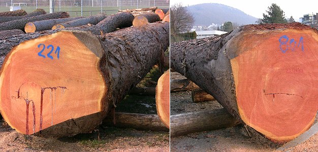 Der teuerste Stamm kommt aus dem Eberbacher Stadtwald Links der teuerste Stamm der Submission, eine Lärche aus dem Eberbacher Stadtwald. Rechts der Lärchenstamm, die mit 1.127 Euro den höchsten Festmeterpreis erzielte. (Fotos: Claudia Richter)(cr) Die Nadelholzsubmission in Eberbach ist abgeschlossen. Fast alle 467 Stämme fanden einen Käufer.
