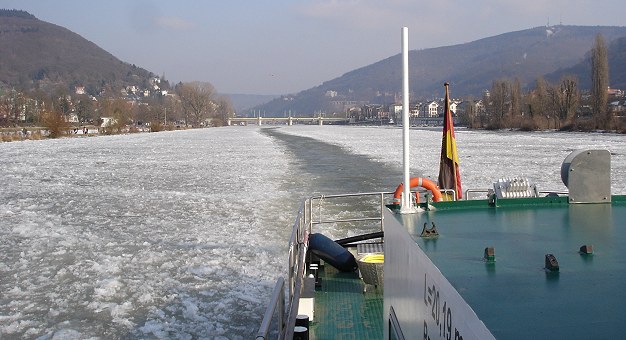 Rien ne va plus – Schifffahrt auf dem unteren Neckar praktisch nicht mehr möglich Packeis gestern auf dem Neckar bei Heidelberg. (Foto: WSA)Mehr Bilder (Klicken zum Vergrößern):